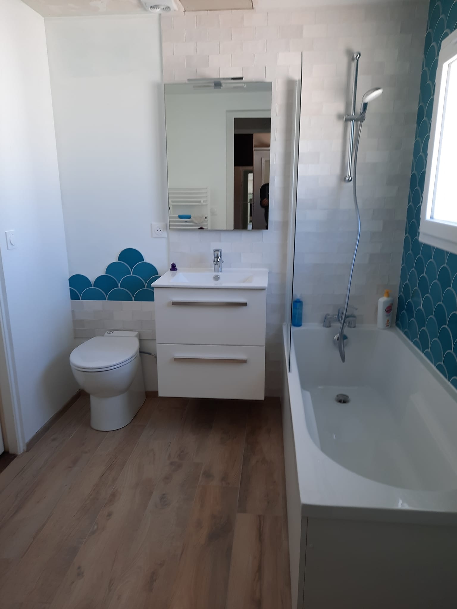 Je réalise la rénovation et la création de salles de bain, en apportant une attention particulière au travail du placo et du carrelage. Le placo me permet de redessiner les volumes, d’installer des cloisons pratiques et de créer des aménagements adaptés à chaque espace.